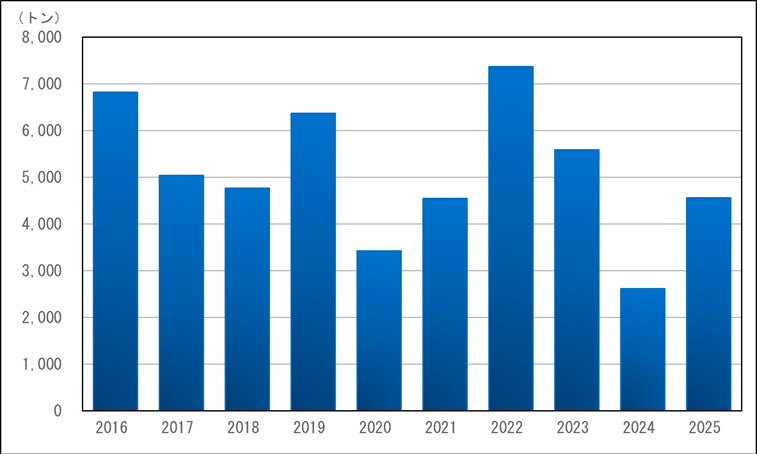 | 国 名 | 数量(トン) | 金額(千円) | 単価(10kg当円) |
